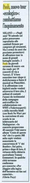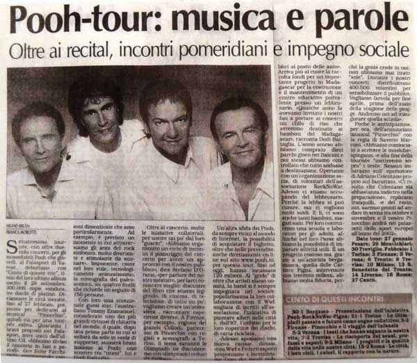 Gennaio 2001 - Corriere della Sera - "Pooh, nuovo tour «ecologico»: combattiamo l'inquinamento", di Gloria Pozzi