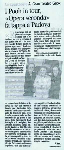 Gennaio 2013 - Testata sconosciuta - "I Pooh in tour, «Opera seconda» fa tappa a Padova", di F. Ver.