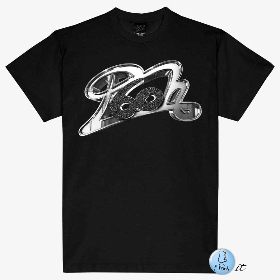 Ogni tour dei Pooh ha visto nascere una serie di t-shirt studiate appositamente. Il modello dedicato al sessantennale vede il logo color platino sovrastato dal numero 60, a sua volta tempestato di strass neri. Sul retro, all'interno, dove di solito è cucita l'etichetta, sono stampate in colore bianco le date “1966-2026”. È possibile ordinare il capo alla pagina https://fansmaniamerch.com/product/pooh-t-shirt-60th-limited-edition-copia/.