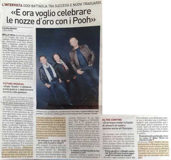 26 ottobre 2011 - Il Resto del Carlino - N°253 - "«E ora voglio celebrare le nozze d'oro con i Pooh»", di Lorella Bolelli