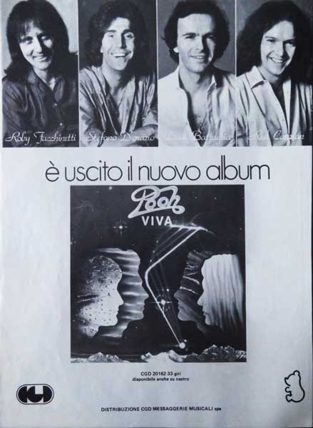 POOH «Viva» (CGD). - Dopo l'ottimo successo registrato dal singolo «Io sono vivo» (che apre questo LP) i Pooh ci presentano il loro discorso completo ch'è più o meno il solito: amori in dimensione romantico-provinciale, quadretti di vita quotidiana, emozioni adolescenziali raccontate con testi non scevri da retorica («bambini in gioco e le cene sul fuoco») dove qua e là c'è anche qualche brillante intuizione («nello strano sole dell'ora legale»). Il testo quindi è l'unica parte che fa un po'ì acqua in un album dove musiche e suoni sono centratissimi, cesellati, e le voci escono cariche di atmosfere. A proposito del precedente «Boomerang» parlavamo della «Piccola Italia dei Pooh»: c'è anche qui, forse più suggestiva, ma con qualcosa di turistico [...].