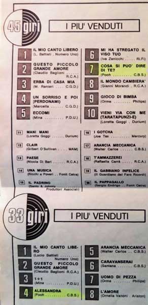 [...] I Pooh proseguono per la loro strada: dopo aver venduto circo un milione e mezzo di 45 giri (ne hanno incisi quattro) e centocinquantamila 33 (ne hanno incisi 2: Opera prima e l'attuale Alessandra) non si sentono affatto sul velluto [...].