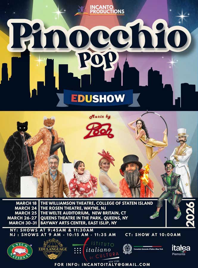 Nei primi giorni di marzo i Pooh, Paola Racca Negrini e Danilo Ballo si sono collegati via streaming con l’Istituto Italiano di Cultura di New York in occasione della conferenza stampa di presentazione di "Pinocchio Pop". Il progetto è nato da una idea di Simona Rodano, molto attiva nelle scuole locali per l'insegnamento della lingua italiana attraverso l'arte. Il musical dei Pooh, nato dal Romanzo di Carlo Collodi nel 2003, diventerà uno strumento per insegnare la nostra lingua in una serie di teatri statunitensi. La nuova versione di Rodano è ambientata in città e Pinocchio sarà declinato al femminile, grazie all'interpretazione di Arianna Stendardo. Gli altri componenti del cast sono: Pasqualino Beltempo, Giuseppe Agostaro, Giorgia Picano, Jasmin Cicchino, Emanuele Fiore, Giovanni Soave. La componente visiva e scenografica è stata affidata a Ryve Obien (3D mapping), Christian Tourdot (scenografia e animazione 3D), mentre il trucco è di Angie Valentino, i costumi di TDF Costumes e gli oggetti di scena sono di Johna Mancini.
