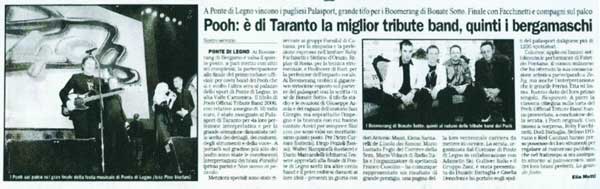 12 febbraio 2006 - L'Eco di Bergamo - "Pooh: è di Taranto la migliore tribute band, quinti i bergamaschi", di Elia Mutti