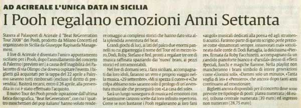 23 aprile 2008 - La Sicilia - Pag.43 - "I Pooh regalano emozioni Anni Settanta"